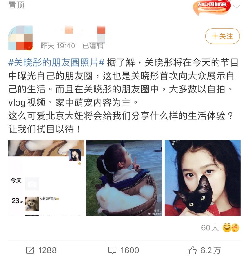 究竟發生什麼事?點進去,全都集體在發同樣的文案,表示關曉彤即將在節目中公開自己的朋友圈照片,並附上同樣的朋友圈截圖,如下👇
