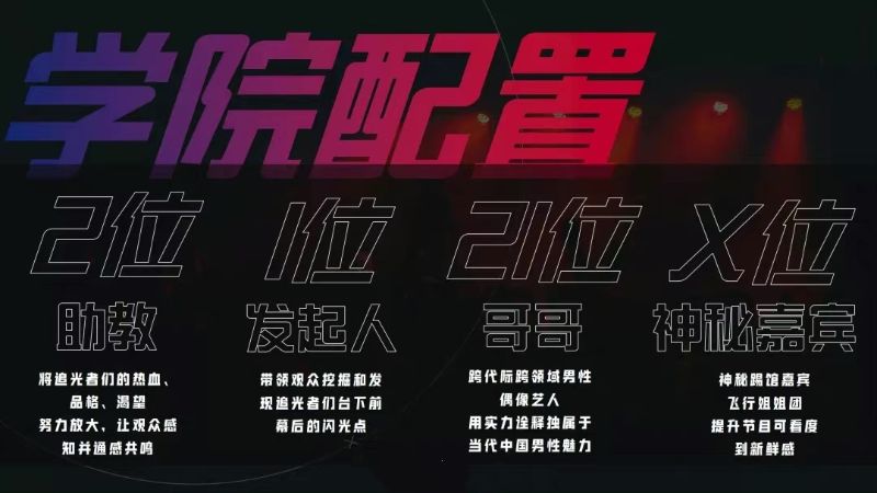 之前招商PPT上,2位助教的人選是楊超越和金晨,但目前尚無確認名單。哥哥們有21位,1位發起人,還有神秘嘉賓,包括了踢館嘉賓和飛行姐姐團~