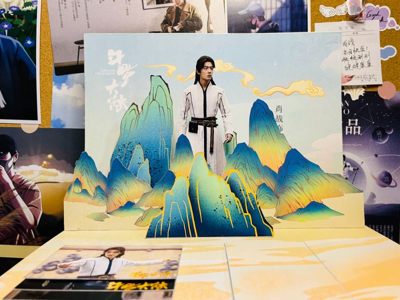 先來看看這位粉絲公開的圖片版,這本生賀書採用全立體設計,來發現一下裡面藏有的小心思!一打開就是肖戰飾演過的角色的立體造型人像~