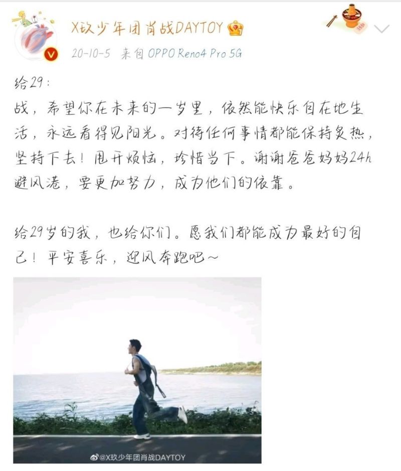 是噠~從29歲的迎風,到30歲的繼續攀登,依然是我們熟悉的肖戰。這也來看看從出道至今,每年生日都堅持發文的肖戰,所擁有的儀式感吧!