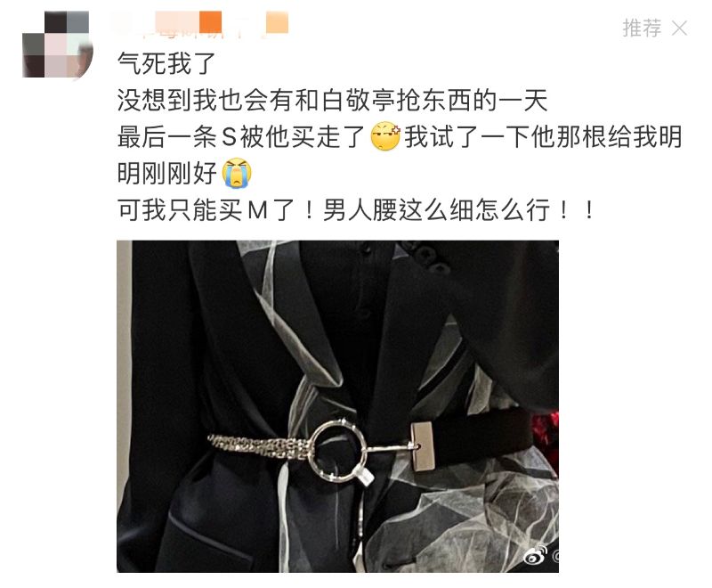 樓主也分享了一則趣事,原來樓主和小白不約而同看上了同一條腰帶,但最後一條S碼卻先被小白買走了,所以樓主只能買M碼,還表示:「男人腰這麼細怎麼行!!」