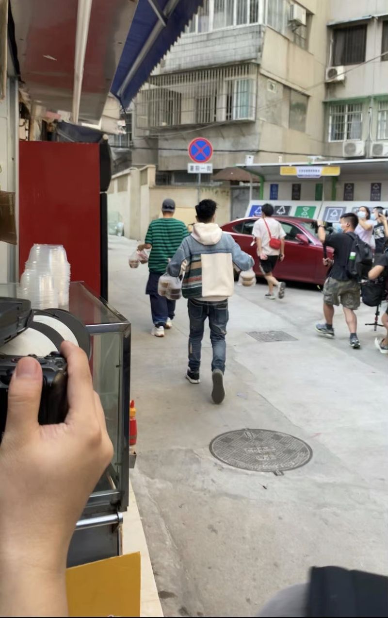 路透圖一出,附近的居民集體出動啦!!!於是不少路透紛紛產出,可以看見哥哥們似乎有任務要完成,像是陳小春隊長帶著忙內梁漢文來到一家餐館外帶,食物一到手立刻飛奔而去,競技味非常濃啊!