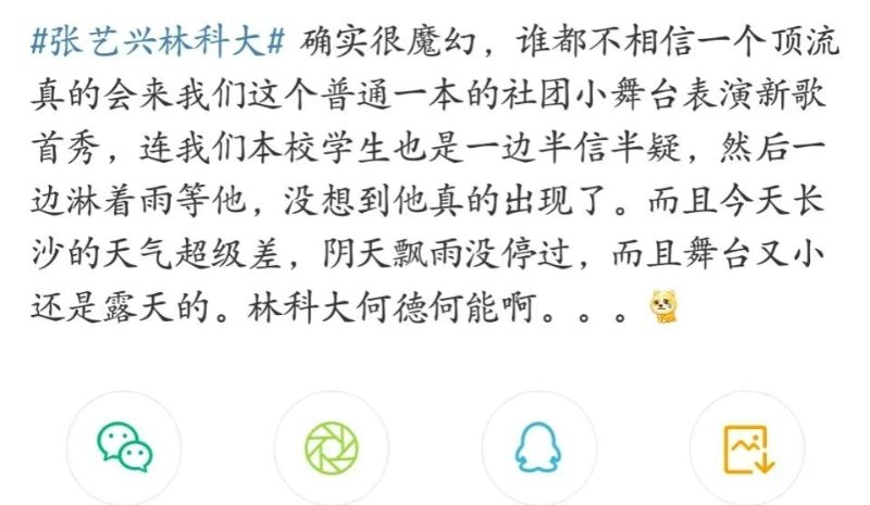 嗚哇!這真的是大驚喜啊!!!表示張藝興在10號下午,突然現身在家鄉長沙的中南林業科技大學(林科大)拍攝節目,當時已經引起不少騷動~