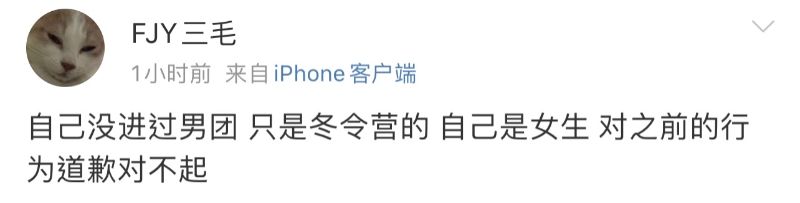 隨著事情引起熱議,付佳源發文為隱瞞性別一事公開道歉,但她強調自己並不是男團成員,只是加入了冬令營,並表示自己不會再出現在娛樂圈和視頻平台。