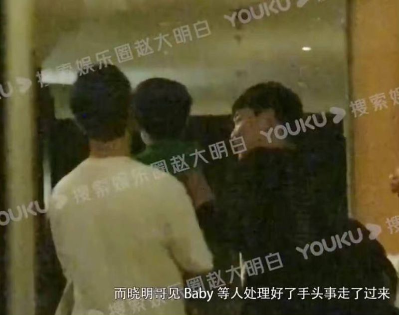 等到Baby辦理好入住手續之後,一行人就一起走上房間,隨後黃曉明和助理才外出。