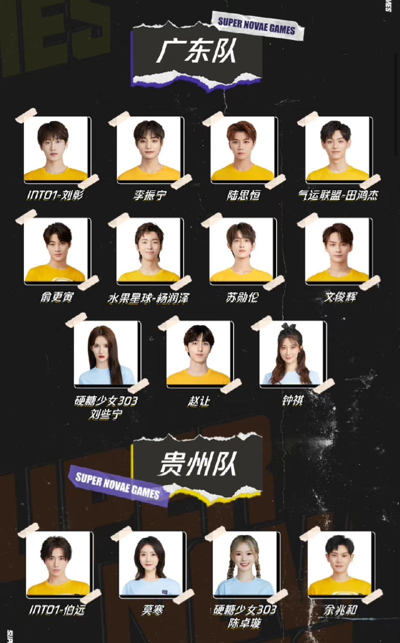 INTO1劉彰、李振寧、陸思恒、氣運聯盟田鴻傑、水果星球楊潤澤、蘇勳倫、文俊輝、俞更寅、硬糖少女303劉些甯、趙讓、鍾祺一起為廣東隊加油,保證你學會的第一句粵語就是“我哋未贏夠”!