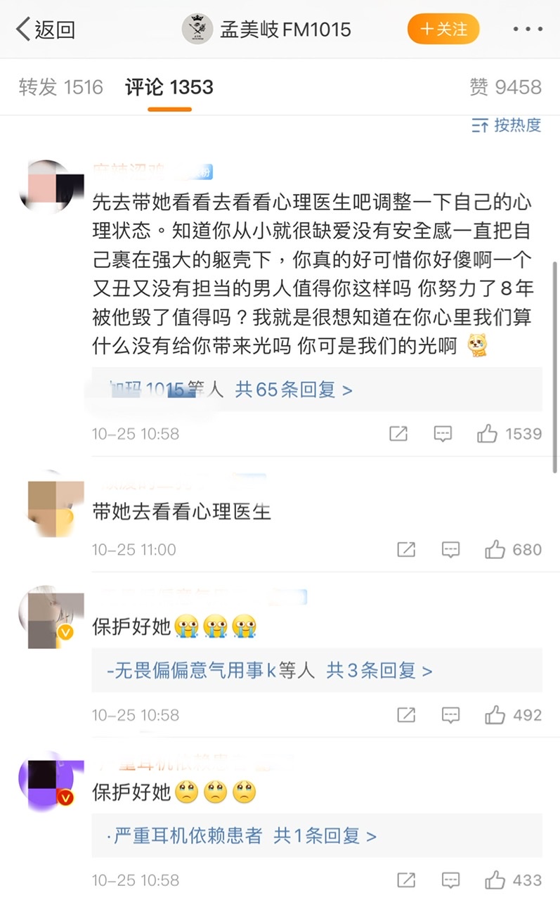 而孟美岐官方宣發轉發了這則聲明,熱評則是粉絲讓工作人員帶孟美岐去看心理醫生,表示她是太缺愛所致。