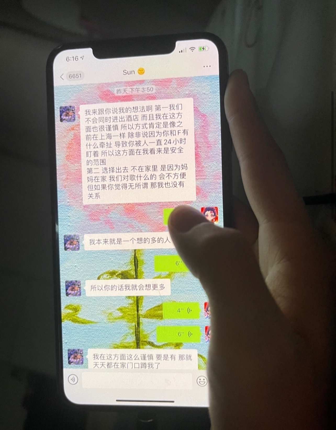 「是,他chu軌了,在我們即將四周年的時候。 這段時間在網上看到了一些言論,哪怕有很多私信一直在和我說“你男朋友出gui了 你不錘嗎”但我還是沒打算站出來,一是因為分手以來我的精神狀態一直很差,沒有力氣也沒有理清自己的思緒;二是因為那段時間我對他還抱著一絲莫名的希望,我知道有些事情說出來受到輿論壓力最多的一定是他,我不想讓他那麼難受;三是他讓我給他的機會,他說他想好好做音樂。 時至今日,我為什麼又站出來了。 一是因為身邊的朋友受到所謂“粉絲們”的影響,收到了很多不好的話,為什麼我要私信挨罵? 為什麼還會有人發私信罵我朋友? 二是因為我發現我還對他留存一絲心軟的時候他還在騙我,還在試圖穩住我,讓我“閉嘴”。 第一次發現他chu軌的時候是7月27號,我在他手機裡看到了一些聊天記錄,是他出差回家後,我看了他的手機。 其實在7月25號凌晨的時候,我和他有大吵過一架,這個時候我已經感覺到不對勁了,也實在崩不住才在27號他回來後看了他的手機,於是我看到了他們談戀愛式的聊天記錄,我不知道我是怎麼樣看完了那些聊天記錄,那一刻我真的很討厭自己的這種第六感。 (聊天記錄有很多 但是放不了這麼多圖所以只發一部分)我轉身看著在我旁邊熟睡的這個男人,心裡有種說不出的感覺,渾身無力卻不停的發抖,腦子裡突然一片混亂,我跑去客廳坐著,掃視著我們的家,想著我倆經歷過的一切,想著他答應過我對我說過的所有話。 想著他和她在一起的畫面。 我覺得我是時候該走了,但心裡又真的捨不得,可是他們還約定了要一起去旅行,要去住酒店。 我還在問自己,他不會是真的是喜歡上別人了吧? 可能是因為一起躺下的,突然旁邊沒人了,大概十幾分鐘吧他醒了,問我怎麼不睡覺,叫我快回去。 於是我回去躺下,他抱著我說我做夢了,我說你夢到什麼,他說夢到我們結婚了,我問他你幸福嗎,他好像很滿足的說“嗯呢”。 那一瞬間我真的很心痛,形容不出來的那種。 但轉頭我又安慰自己,他願意抱著我睡覺,對我說這些話,他還是愛我的吧? 我依舊選擇騙自己。 我告訴自己。 他是愛我的。 於是我什麼都沒有說。 繼續該工作工作,該生活生活。 只是睡眠質量變得很差。 加上公司那段日子比較忙碌,我真的身心俱疲。 到了8月1號凌晨,我們還是照舊過著正常生活。 他睡著後我又忍不住看了他的手機。 看完聊天記錄我還在騙自己,他們2號晚上約定要去住酒店。 我在想如果他真的去了,我之後質問他,他不承認的話,我得留下證據,於是拍下了他們的聊天記錄,這一晚我在預想各種結果,我甚至已經想好瞭如果他沒去,我就當這件事情沒有發生過,現在想想我真是個s B。 中午睡起來,他洗完澡,我照舊給他準備好換洗的衣物和出差要帶的行李。 他整理好出門前,來我身邊抱起我說,“老婆我愛你,這段時間繁瑣的事情太多了,等這段時間過去這些事都處理完,我們就結婚買房子,我想和你有個家”。 我看著他,他真的說的很認真,我感覺好像得到了巨大的安慰。 我抱著他說“好,快去吧,我等你回來”。 他走後,直到晚上一直都在錄音棚裡,我沒等到他回家,直到晚上給我發消息說他要回公司處理文件。 我沒有辦法控制自己想要跟上去看看他會不會去,結果我就看著他打車去了酒店。 我懵了。 我不知道自己該何去何從,我從17年大學畢業來到北京就和他在一起了,好像這些年我的生活裡只有他,我不知道那一刻我要去哪裡,我不想回“我們的家”。 過了好久我才給朋友打了電話,讓她接我去她家。 第二天中午,我告訴他我都知道了。 這期間我們經歷了大吵大鬧,他媽媽知道後,第二天趕來了北京。 說來也巧,我剛收拾好行李準備走的時候,他媽媽進了家門拉著我坐下來聊了發生的所有事,他媽媽也覺得我應該離開他,我跟他在一起不會幸福,在我走之前還說,如果他真的很誠懇也希望我還是給他一次機會。 畢竟我們這些年也已經到了談婚論嫁的地步,我真的真的很捨不得。 所以在我離開北京前,我們還是在見面,還是一樣做著這些年每天都會做的事,我還是抱著希望,甚至在這個時候,我都會自我調解“是人都會犯錯,他還是愛我的,這麼多年了,他不會這麼狠心”。 他也一直說他不想失去我,直到我準備回老家給家裡解釋清楚最近發生的這一切。 我們說好了,等我回家跟家裡解釋清楚,然後他來接我回“我們的家”。 回家後,我也確實因為情緒不好,有影響過工作進度,但也是基本完成了,也在走之前把一些工作對接的內容,教給了他媽媽、他還有他的助理。 事情就是這樣。 直到九月底我們又一次聊起了感情的事情。 是我傻,我就是覺得他對我的態度還是愛我的,我們還是相愛的,我們還會有以後,還會買房子結婚。 直到他生日前也都還在說想我,還給我寫了歌,我想生日他會找我的吧,結果卻是給我當頭一棒,他帶著她去過了他的生日,也在後來的幾天裡去西藏陪她過生日。 在他們旅行的時候,突然有很多人來私信我,告訴我航班信息,告訴我“你男朋友ChuGui了 你不管嗎” ? 我承受不住了,於是我問了他,他承認了一切,告訴我他最近太累了,是她準備好了這一切一定要帶他去的,結果私信我的人又告訴我,是他準備了這一切帶她去的。 我當晚跟他通話告訴他,我真的沒有辦法接受這樣的事實擺在我眼前,我說你哪怕現在跟誰在一起都行,哪怕這段時間你重新愛