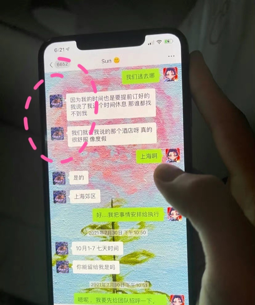 先來看看在陳令韜前女友公開的男方和孟美岐的聊天截圖,孟美岐的頭像是一隻紫色背景的小鹿!