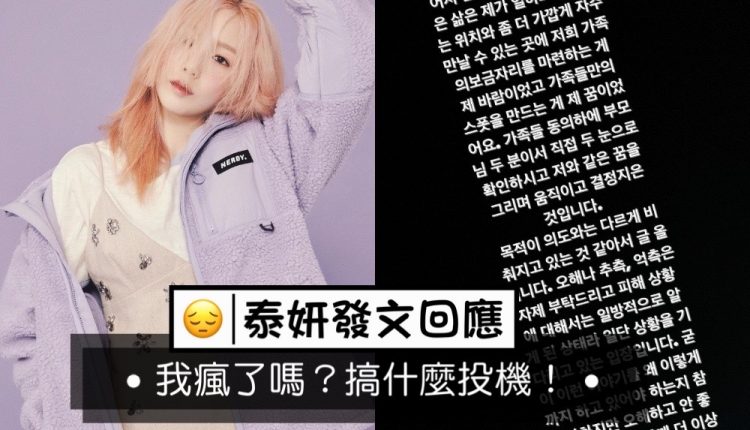 泰妍在28號下午,更新了INS動態回應這件事,全文如下: