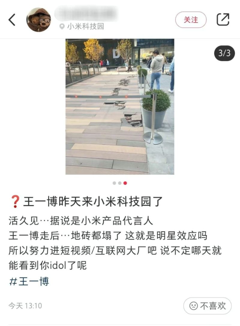 回來本文重點,那就是…如果王一博在你公司園區夜跑,你的反應是什麼?自然無條件必須圍觀啊!!!!於是所以,不少在小米科技園中工作的科技人開啟追星模式,而社交平台上,到處都是小米員工的凡爾賽式曬視頻,還有粉絲羨慕的口水和淚水。