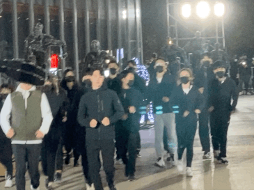 百人一起夜跑,但實際上是要突顯手機充電的快速性,跑一刻就充滿電~