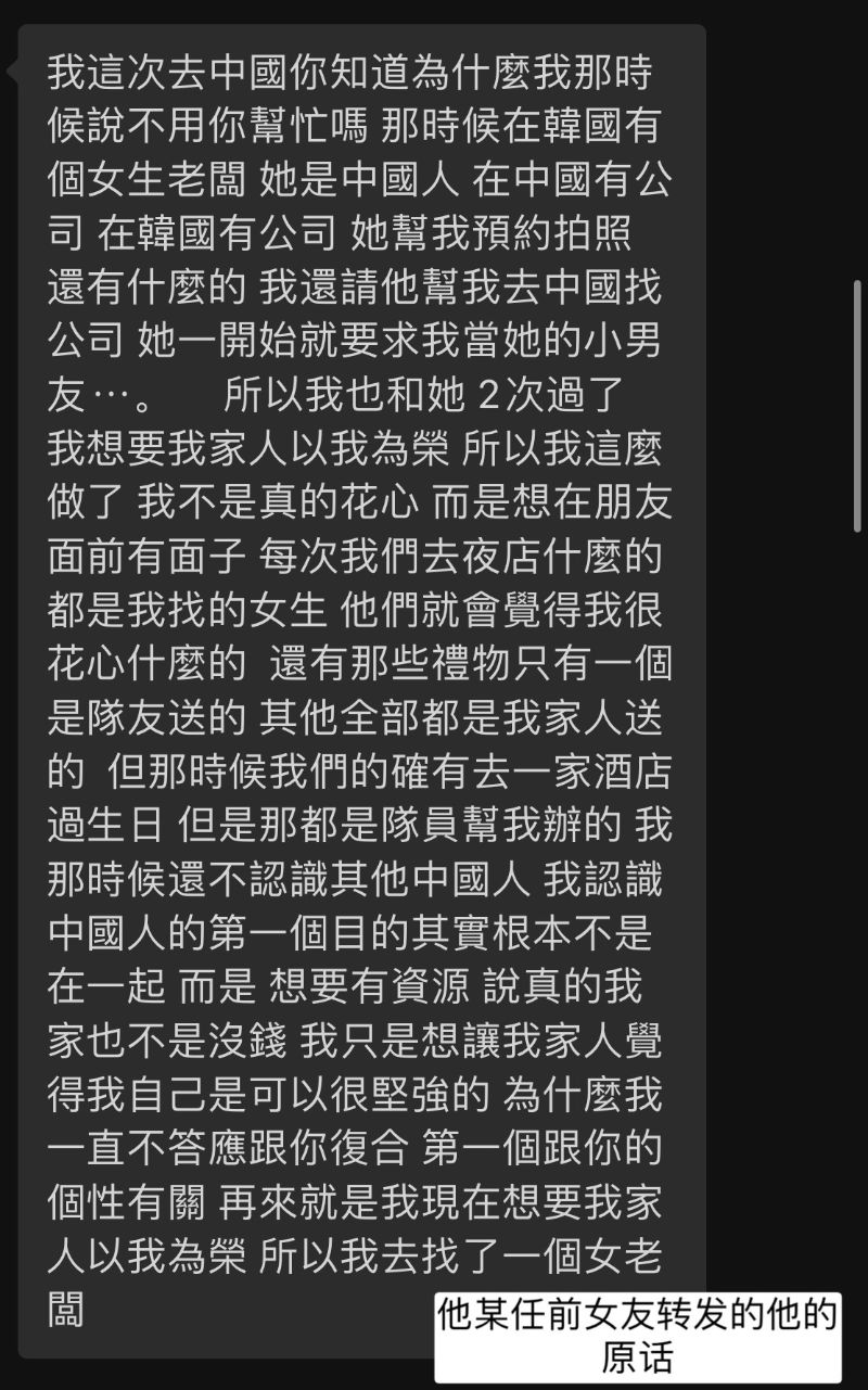 該網友公開的孫祈駿前女友轉發的“孫祈駿原話”。