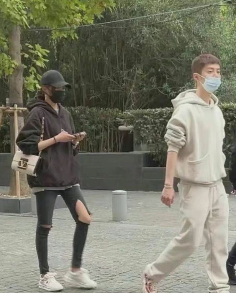 從2017年官宣之後,兩人極少被拍到同框,而且還是這麼近距離的同框啊!注意到了嗎?兩人穿的還是情侶裝咧!