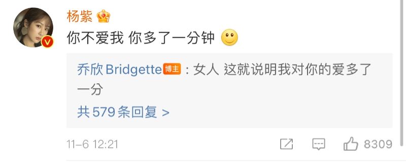 最後還說:「你不愛我,你多了一分鐘!」喬欣高情商回復:「女人,這就說明我對你的愛多了一分」從兩人的聊天方式來看,真的是好閨蜜才敢這麼說啊!