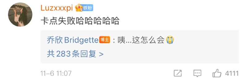 但沒想到我們喬欣今年卡點失敗,遲了一分鐘文才被發出,先是被粉絲調侃:「卡點失敗哈哈哈哈哈」急得喬欣回復:「咦…怎麼會😭」