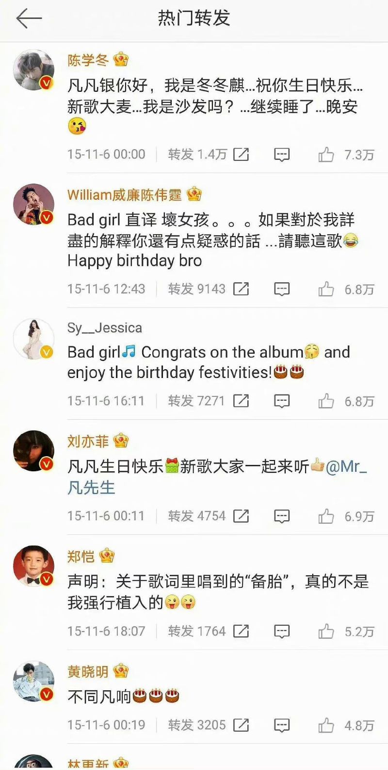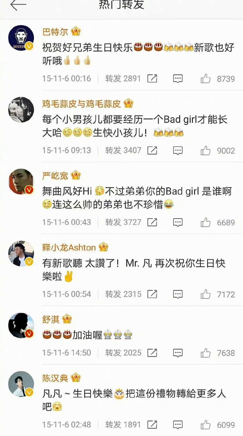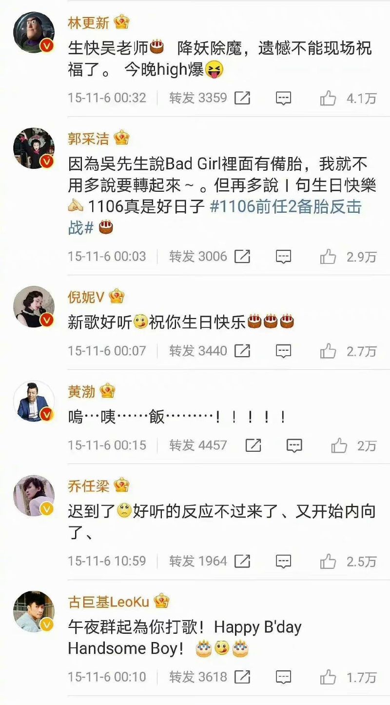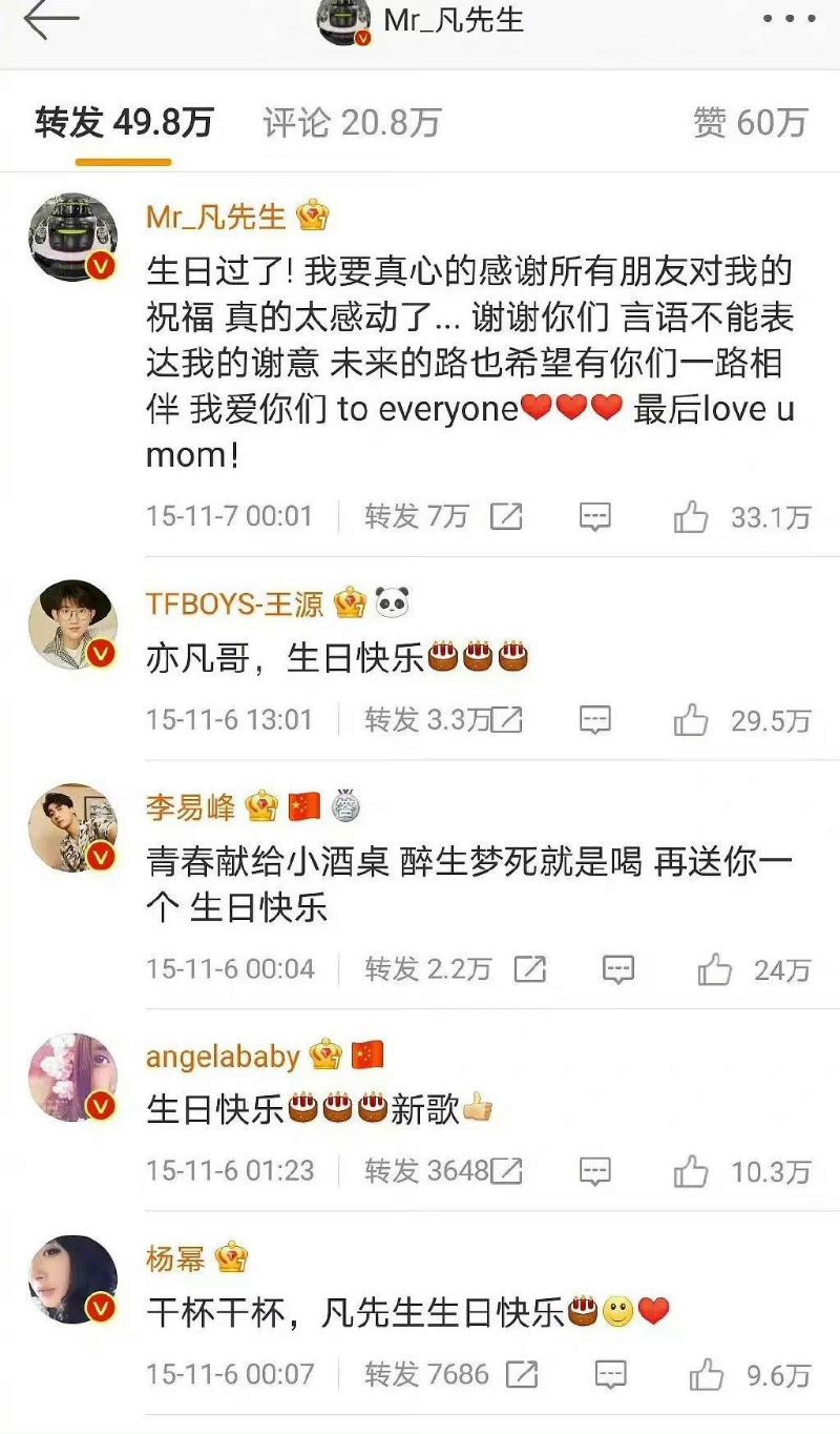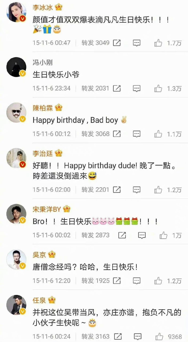 就有網友扒出2015年吳亦凡的生日微博,當時可以說是他事業高峰期,微博下幾乎半個娛樂圈都來留言,祝福他生日快樂!