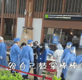 還很認真觀察前面的人怎麼做核酸檢測~