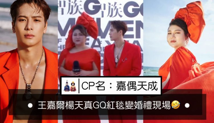 結果沒想到我們的王嘉爾和楊天真的造型居然“撞色”了,而且都是顯眼的“中國紅”色!