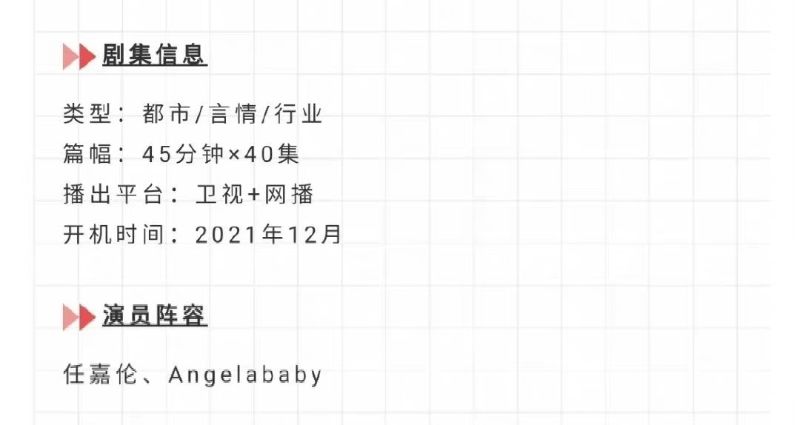 而這部劇目前定了是40集,即將在2021年12月開機,演員陣容:任嘉倫、Angelababy。