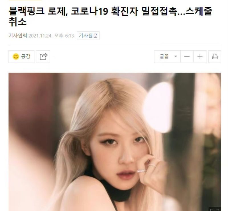 而早在官方發表立場之前,成員朴彩英就因密切接觸新冠確診者而取消原定行程。朴彩英原計劃25日參加某品牌開業紀念儀式,但是主辦方在24日下午表示:「朴彩英的拍照活動突然被取消,她被分類為與新冠密切接觸者,因此不能參加活動。」