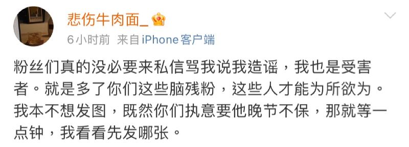 到了第三條,這位網友怒斥這位男歌手,已經擁有兩個妻子了還來內地睡粉,指責他是睡粉慣犯。該網友指責表示女友年齡比他小了四輪,沒良心沒道德根本不配做這一行!並在爆料文最後艾特了譚詠麟,由於譚詠麟最近在參加湖南衛視旗下的《時光音樂會》,推測因此他也艾特了湖南衛視官博。不過該網友隨後又編輯掉了艾特的名字,