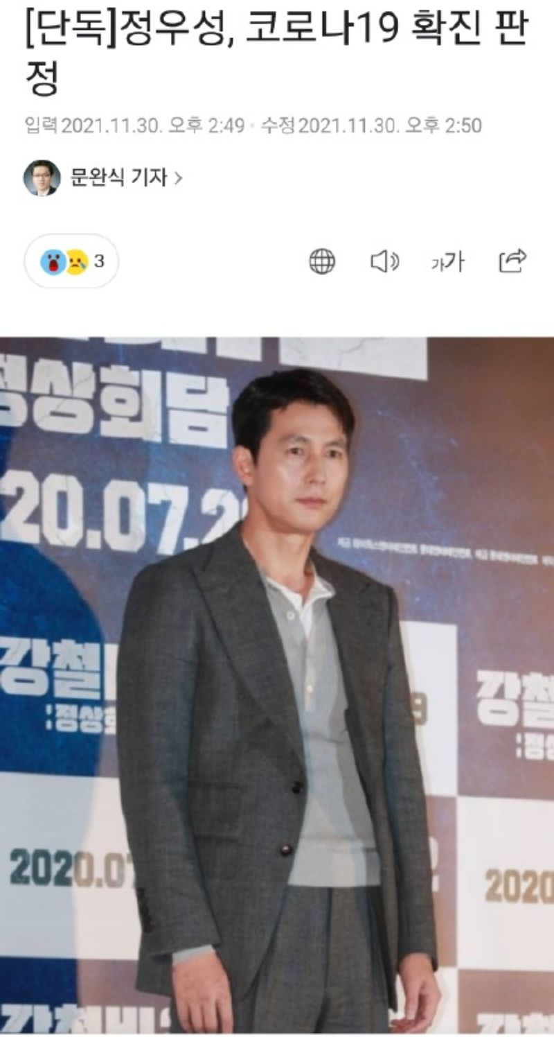 是噠!根據韓國媒體快報,韓國演員鄭雨盛剛確診新冠肺炎!!根據韓媒報導,鄭雨盛和之前確診的LISA一樣,都是打完2劑疫苗的狀態,但仍在29晚接獲確診新冠肺炎的消息,而經紀公司也證實此事,表示會按照當局防疫措施,好好地進行隔離。
