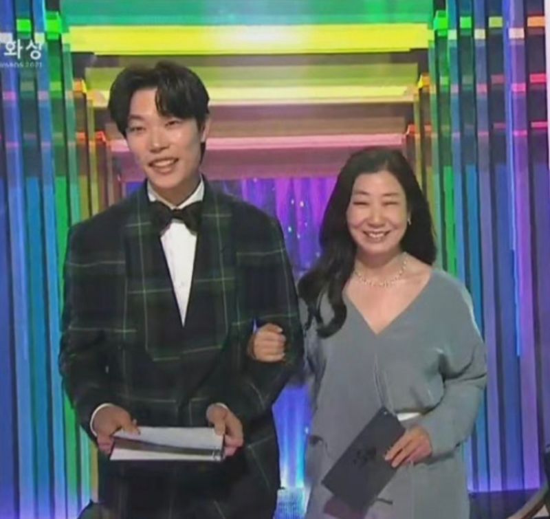 當天曾在《請回答1988》中出演母子的柳俊烈和羅美蘭,也同台頒獎!