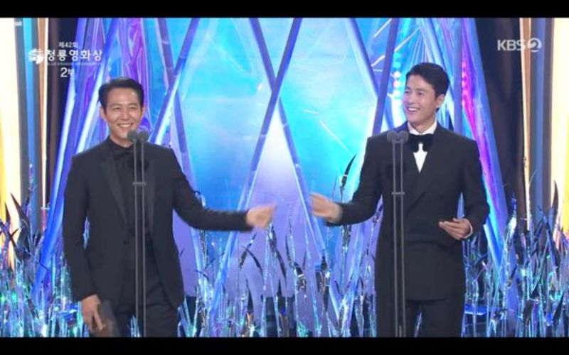 更重要的是,鄭雨盛當天還和好友李政宰同台頒獎,全程沒有戴口罩,在台上對答長達10分鐘!
