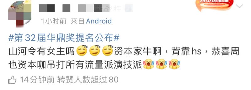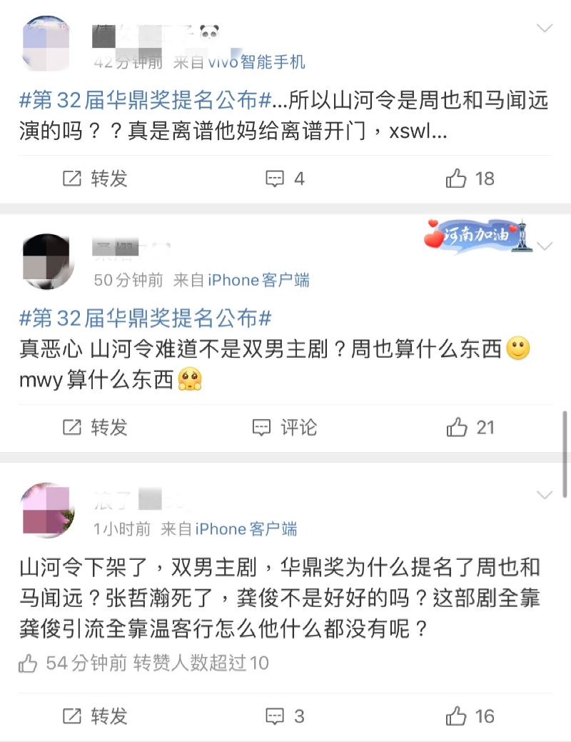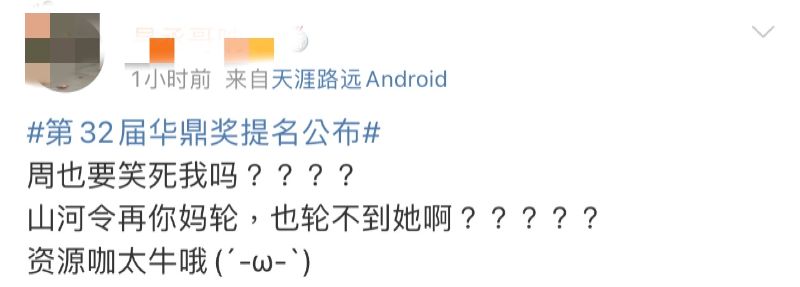 另外,對於周也憑《山河令》入圍了【中國古裝題材電視劇最佳女演員】,不少網友表示…不解!眾所周知《山河令》是雙男主劇集,什麼時候跑一個女主來了?????