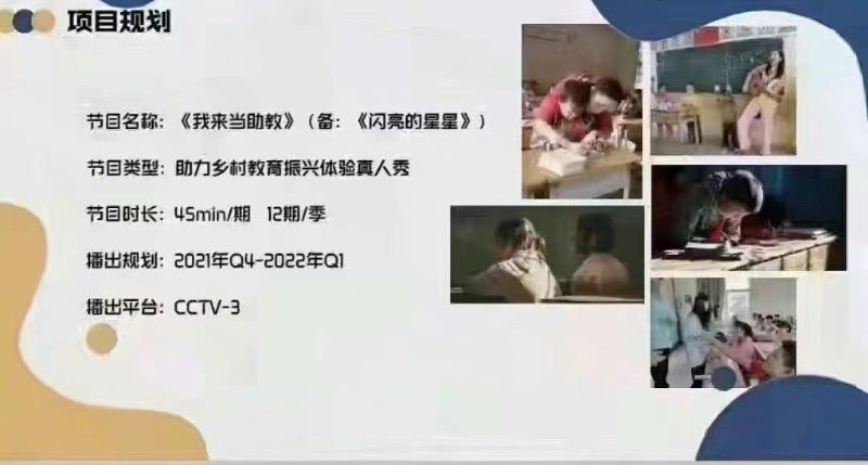 沒錯!先來看看網傳肖戰即將出演的節目,這檔由CCTV主導的公益節目叫《我來當助教》(或:《閃亮的星星》),是一檔助力鄉村教育振興體驗真人秀!節目預計有12期,即將在2021年第四季至2022年第一季間播放!