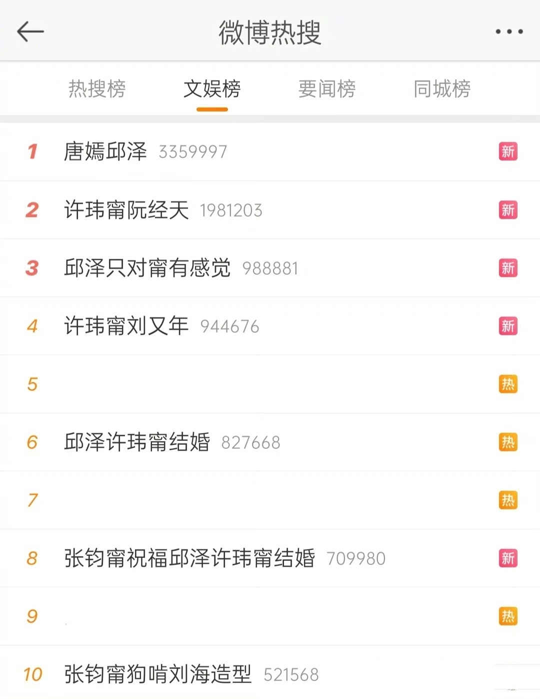 對於兩人閃婚,最精彩的部分莫過於,微博的熱搜榜幾乎都是兩人和前任們的名字上了熱搜,兩人不愧都是發電機啊👇
