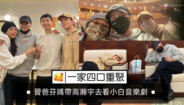 而在10號晚上,晉爸芬媽居然又和高瀚宇一起,去支持小白的音樂劇《人間失格》啦!張晉發文曬出在會場的照片,還搞笑問「我們這麼戳他眼睛他都不動呢?」