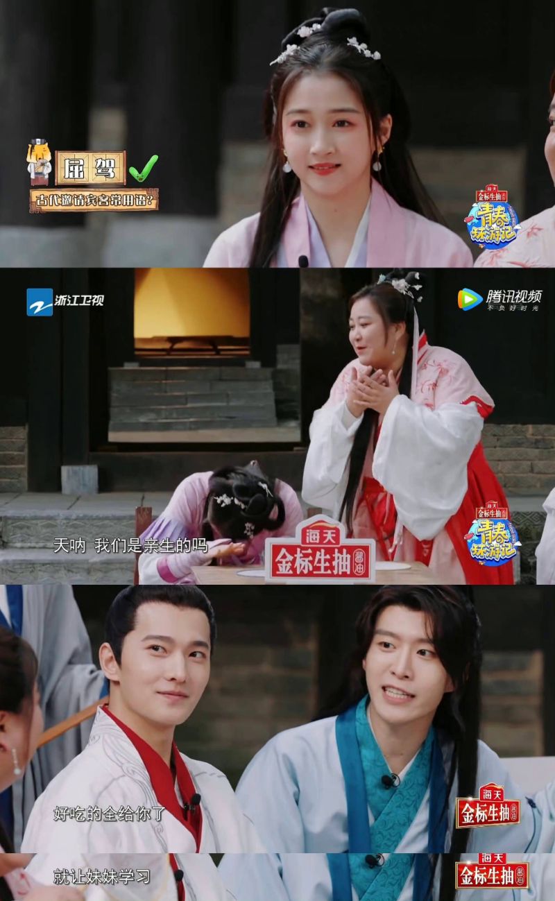 在最新的《青春環遊記3》中,由於關曉彤和賈玲扮演大小喬,而關曉彤在古文知識中一直拿分,福西西對賈玲說:「好吃的全給你了,就讓妹妹學習。」