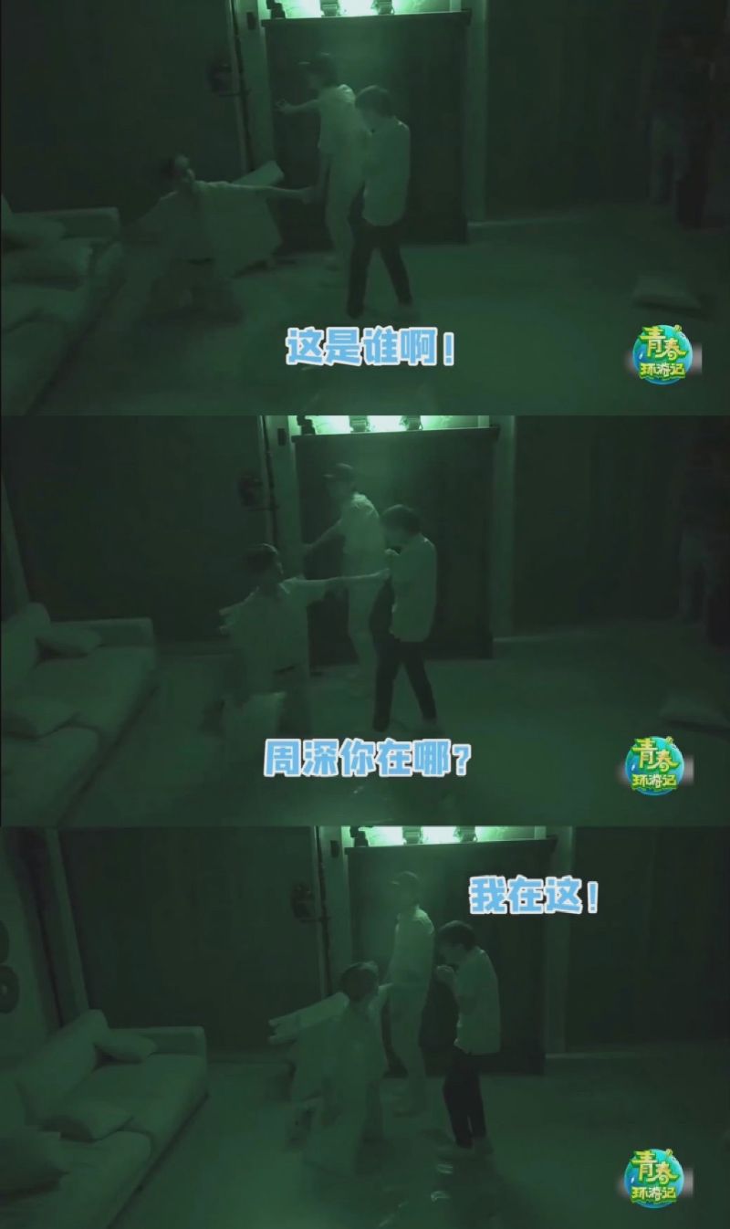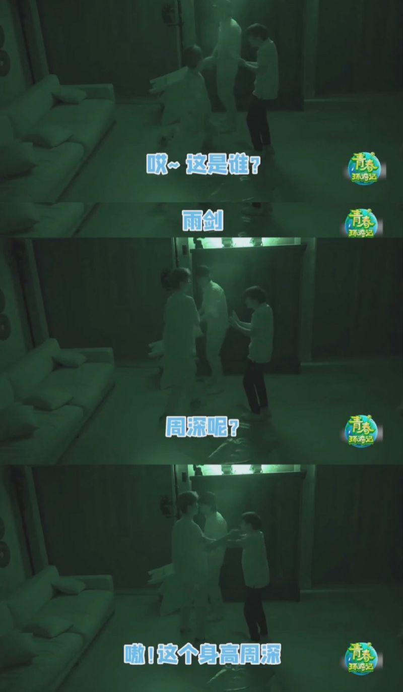 在密室分不清張雨劍和周深時,靠身高來判斷:「嗷!這身高是周深!」