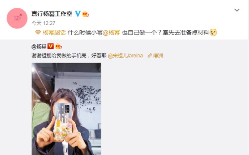 至於楊冪和宋祖兒,則在今年5月有了交集。大冪冪突然po出一張自拍照,表示謝謝宋祖兒送自己親手做的手機殼!