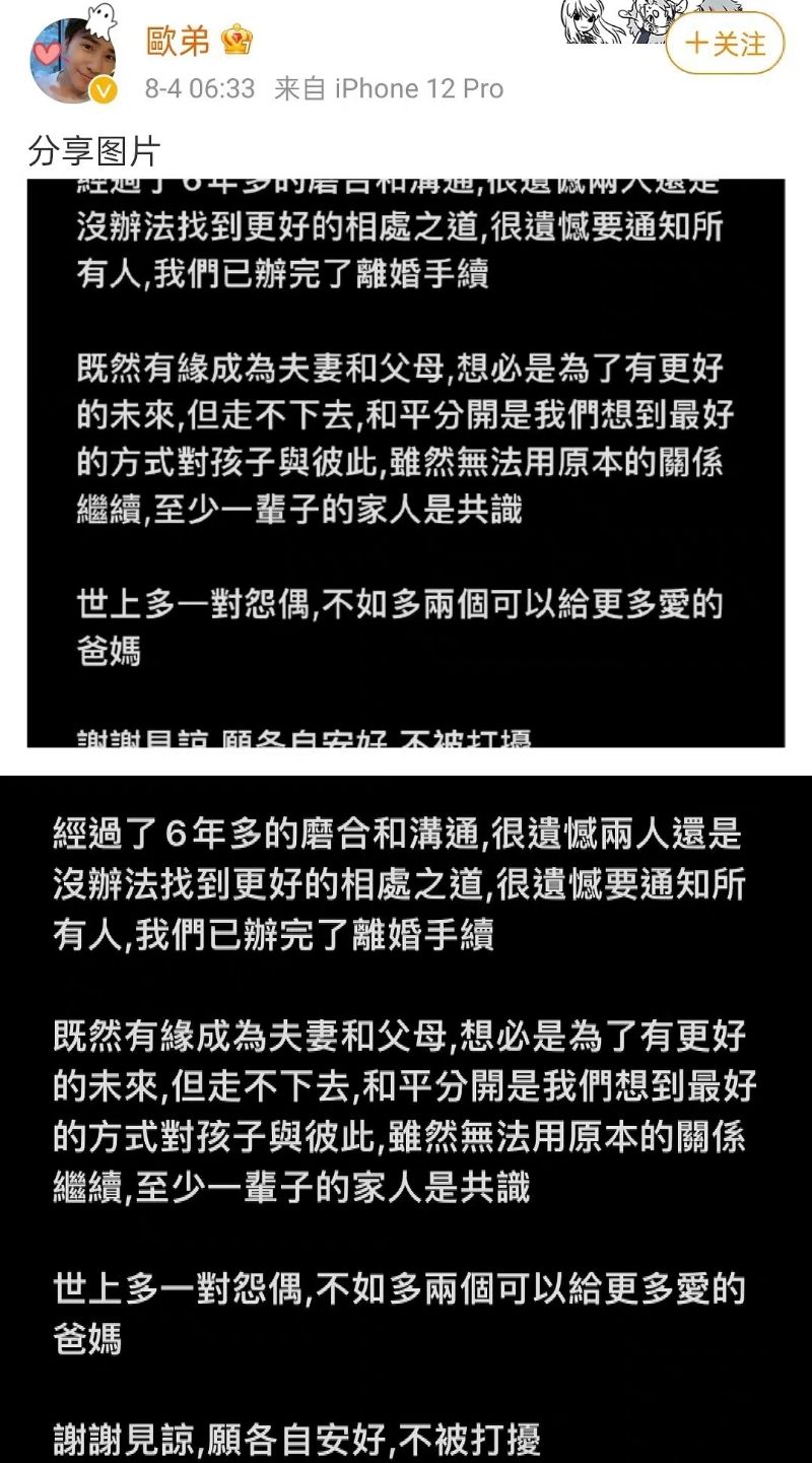何謂好聚好散?就是雙方共同發文,沒有撕破臉,和平體面的分手!一般都有點“震撼彈”的感覺!
