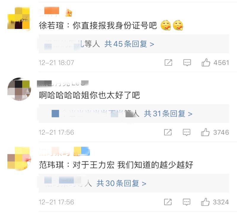 「徐若瑄:你直接報我身份證號吧!」、「啊哈哈哈哈姐你也太好了吧!」、「范瑋琪:對於王力宏,我們知道的越少越好!」