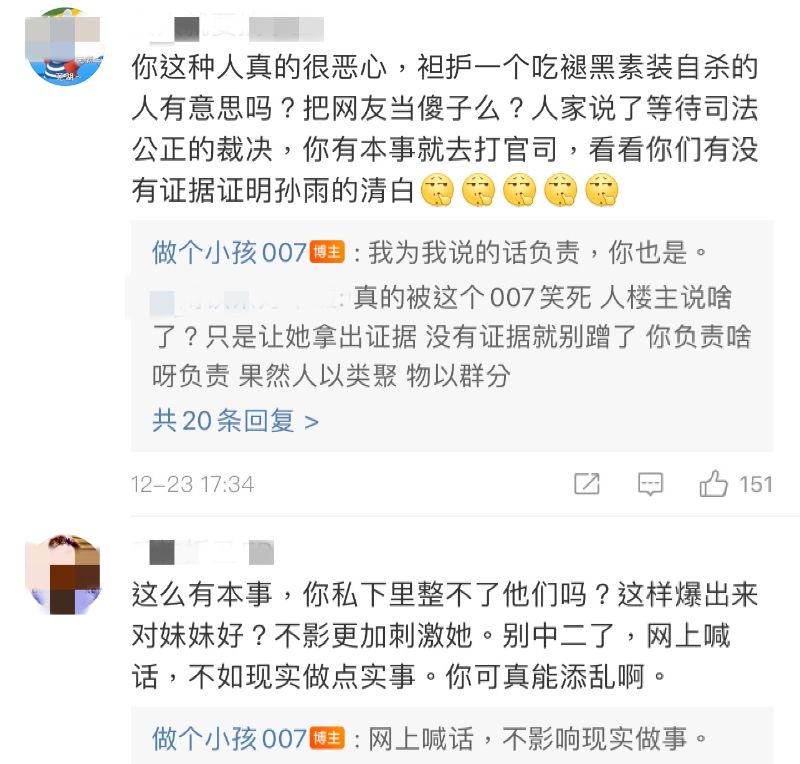 在回復指責Yumi只是吃了褪黑素裝自殺網友時,樓主回復:「我為我的話負責,你也是。」