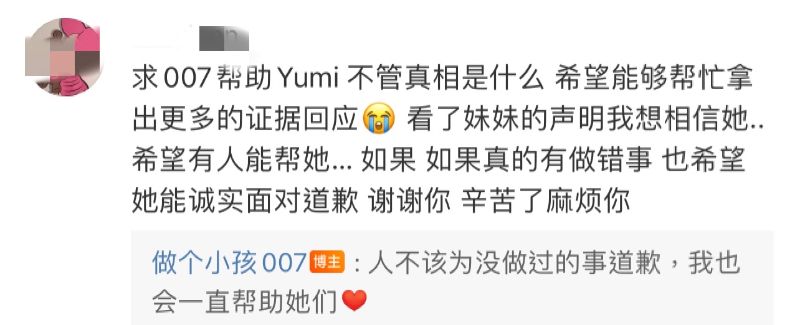 另外,對於網友喊話希望如果Yumi真的做錯事,希望可以誠實面對道歉時,樓主回復:「人不該為沒做過的事道歉,我也會一直幫助她們❤️」