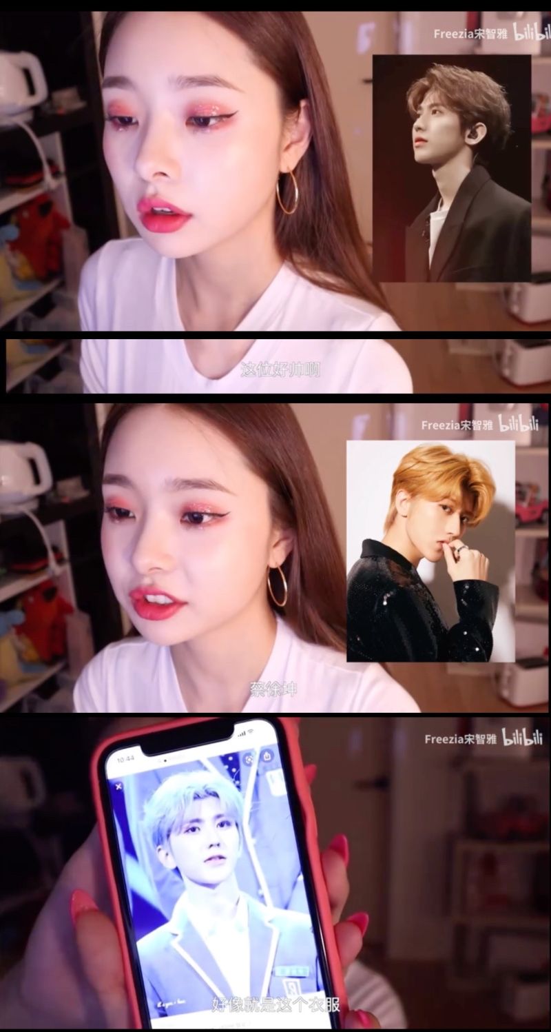 還有一次則是她在很多中國男女藝人裡,以外形為標準選出自己最喜歡的類型。宋智雅在女藝人裡選了鞠婧祎,男藝人則是選了蔡徐坤!當時她表示蔡徐坤是中國Produce 101的C位,而且立刻上網搜尋了坤坤相關的資料👇