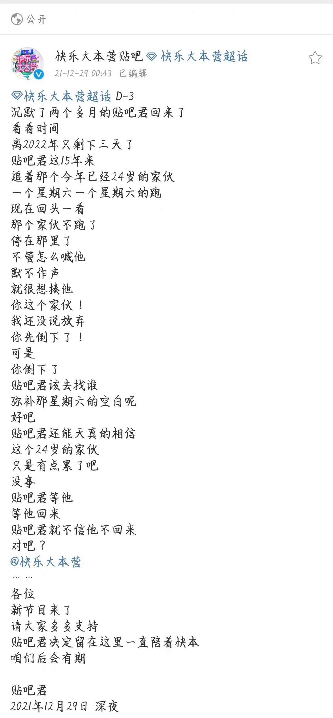爺青結!《你好星期六》官宣定檔!24年快樂大本營走進歷史?貼吧賬號發文喊話!網友集體奔潰:「快本可以不看!但不能沒有!」