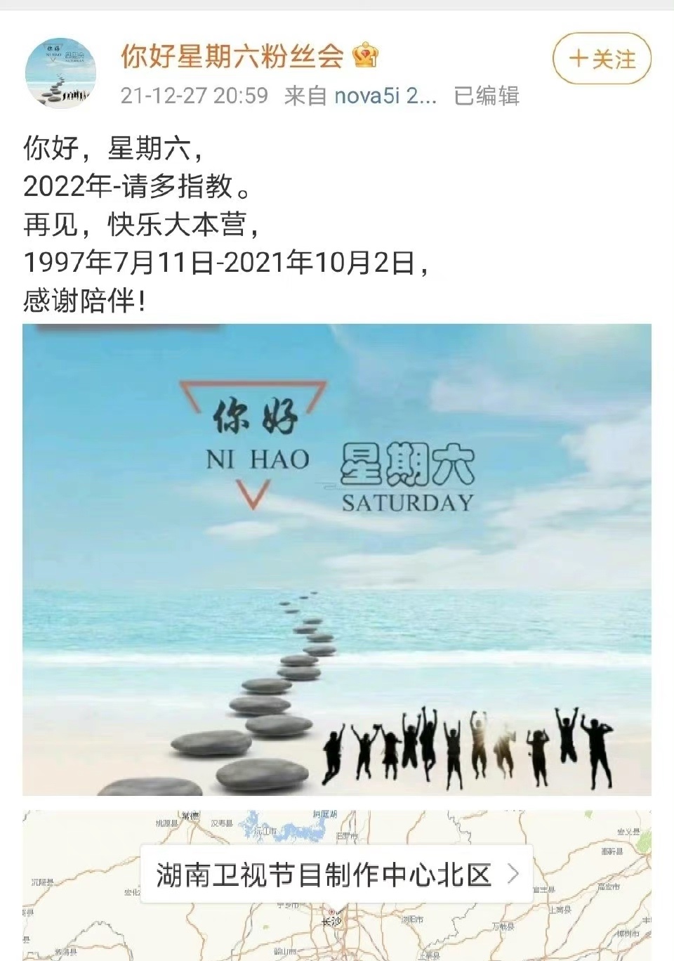 一個疑似你好星期六的粉絲賬號,也發文表示「再見,快樂大本營!」
