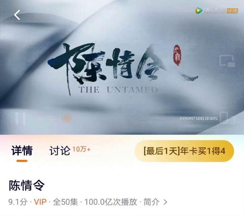 而《陳情令》帶出來的熱度,可以說是現象級的,不但播出時,在超前點播最後6集,讓騰訊直接創造1.56億人民幣的收益!