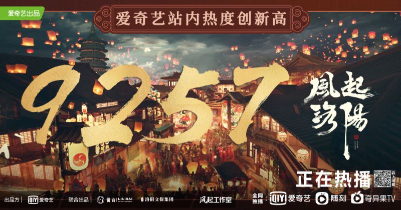 至於黃軒、王一博、宋茜主演的《風起洛陽》,開播第二天就創下第二名高熱度,點讚!