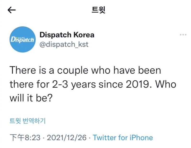 新年快樂!!!!艾古~還有兩天啦!是噠,每年元旦除了迎接新的一年開始,最期待的自然就是D社的元旦情侶爆爆啊!這幾年,每年元旦幾乎都爆出一對元旦情侶的韓國Dispatch,早已經放出了有關2022年元旦情侶的提示,那就是…從2019年開始至今,已經交往2、3年了👇