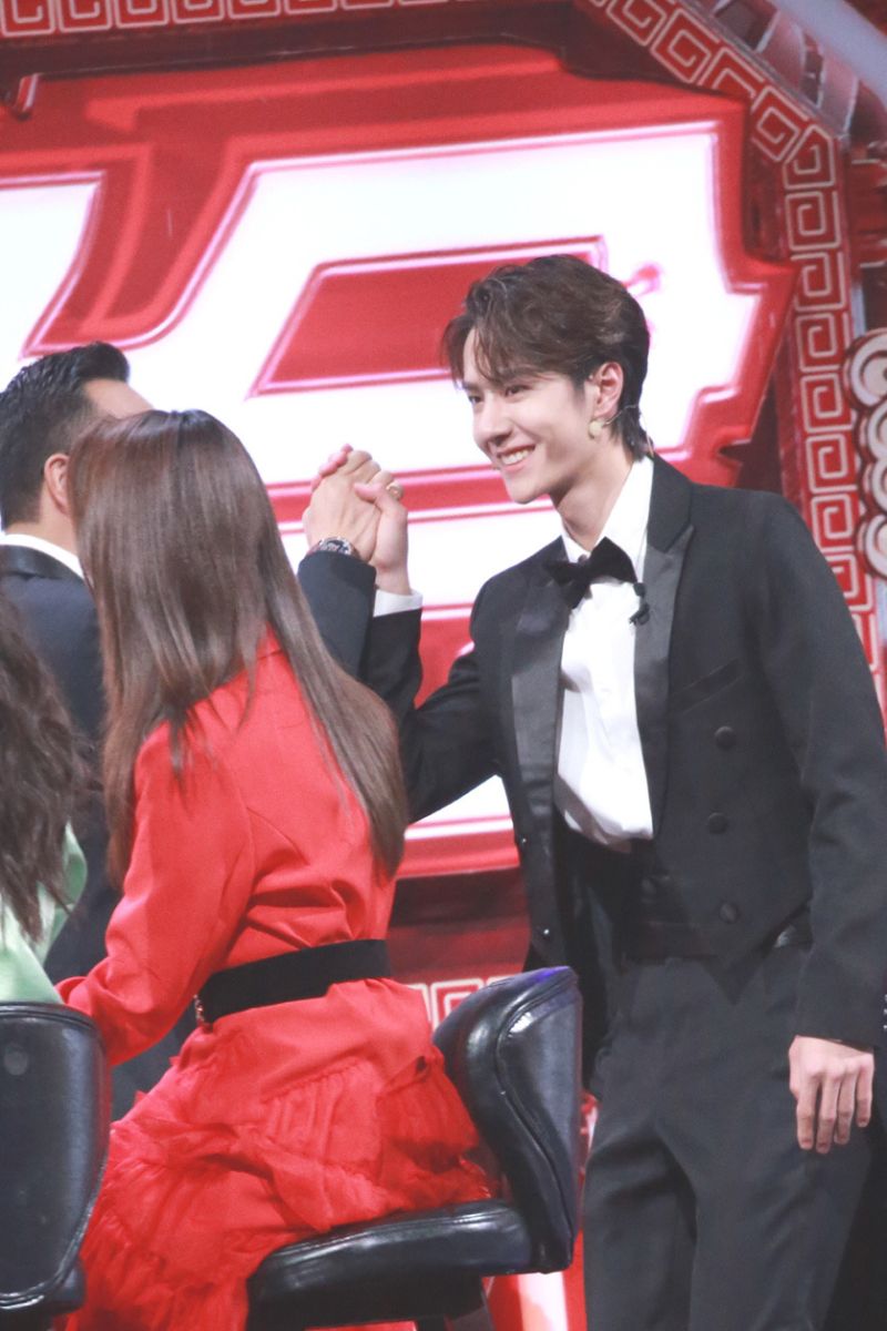 鏡頭再轉回來,看看31號綵排這天,王一寶和涵哥熟悉的打招呼方式👇