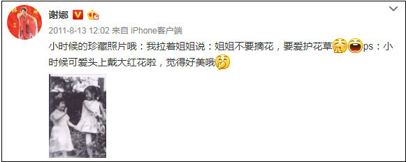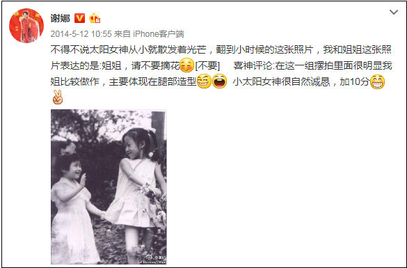 最後,謝娜文中提到了姐姐抗癌成功!其實這些年謝娜的微博中,曾三次po出同一張兒時照,都提到了姐姐,但謝娜一向是獨生女,究竟這位姐姐是不是堂姐之類的, 至今未解。不過抗癌成功,真的也值得祝福啊!