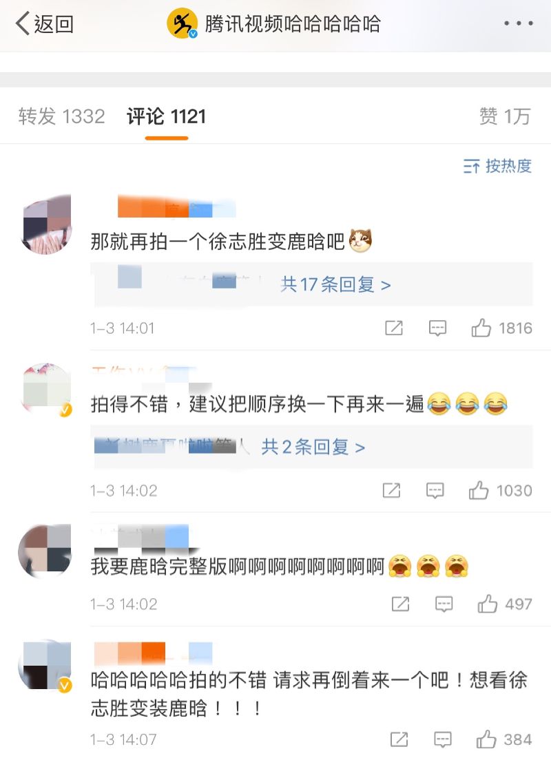 「哈哈哈哈哈拍的不錯,請求再倒著來一個吧!徐志勝變裝鹿晗!!!」