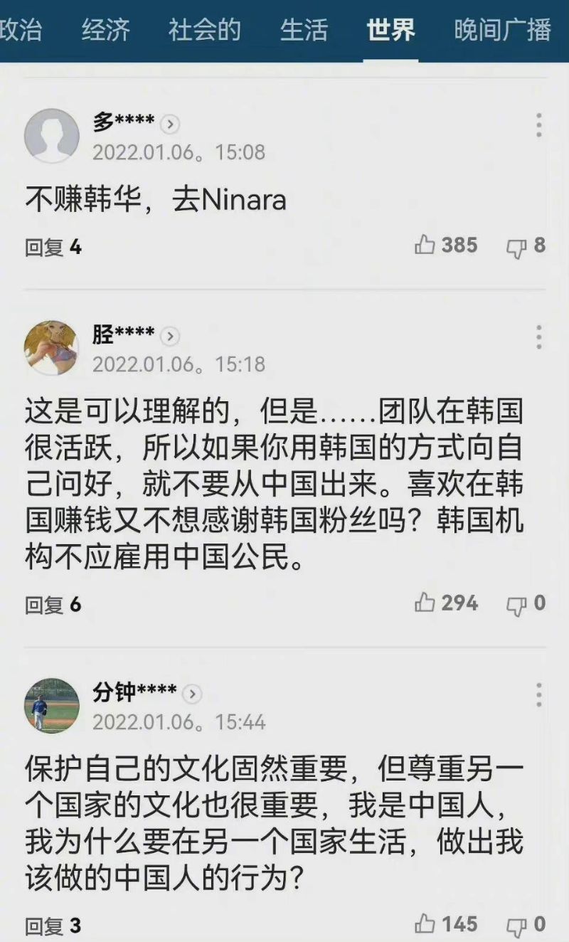 「這是可以理解的,但是…團隊在韓國很活躍,所以如果你用中國的方式向自己問好,就不要從中國出來。喜歡在韓國賺錢又不想感謝韓國粉絲嗎?韓國機構不應該僱用中國公民!」